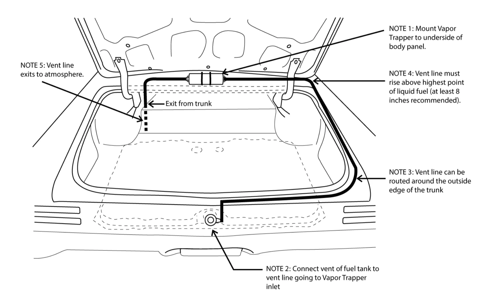 The Vapor Trapper can be easily mounted using two 2-1/2” clamps put in line with your fuel tank vent line. Use #6 AN O-ring Boss fitting (barb fittings with a rubber fuel hose or a threaded AN fitting for a more custom installation). Make sure to install the Vapor Trapper, or at least the inlet line, far above the fuel tank (recommended minimum 8") to avoid liquid fuel getting into the filter. Fuel getting into the Charcoal media drastically reduces the performance of this product. If this occurs, please contact us so we can recharge your Vapor Trapper. When possible, we recommend installing the 8" version simply because it holds more charcoal media to maximize longevity. The 6" was primarily designed for applications where the 8" would not fit. Both sizes are equally effective in reducing fuel vapor smell.