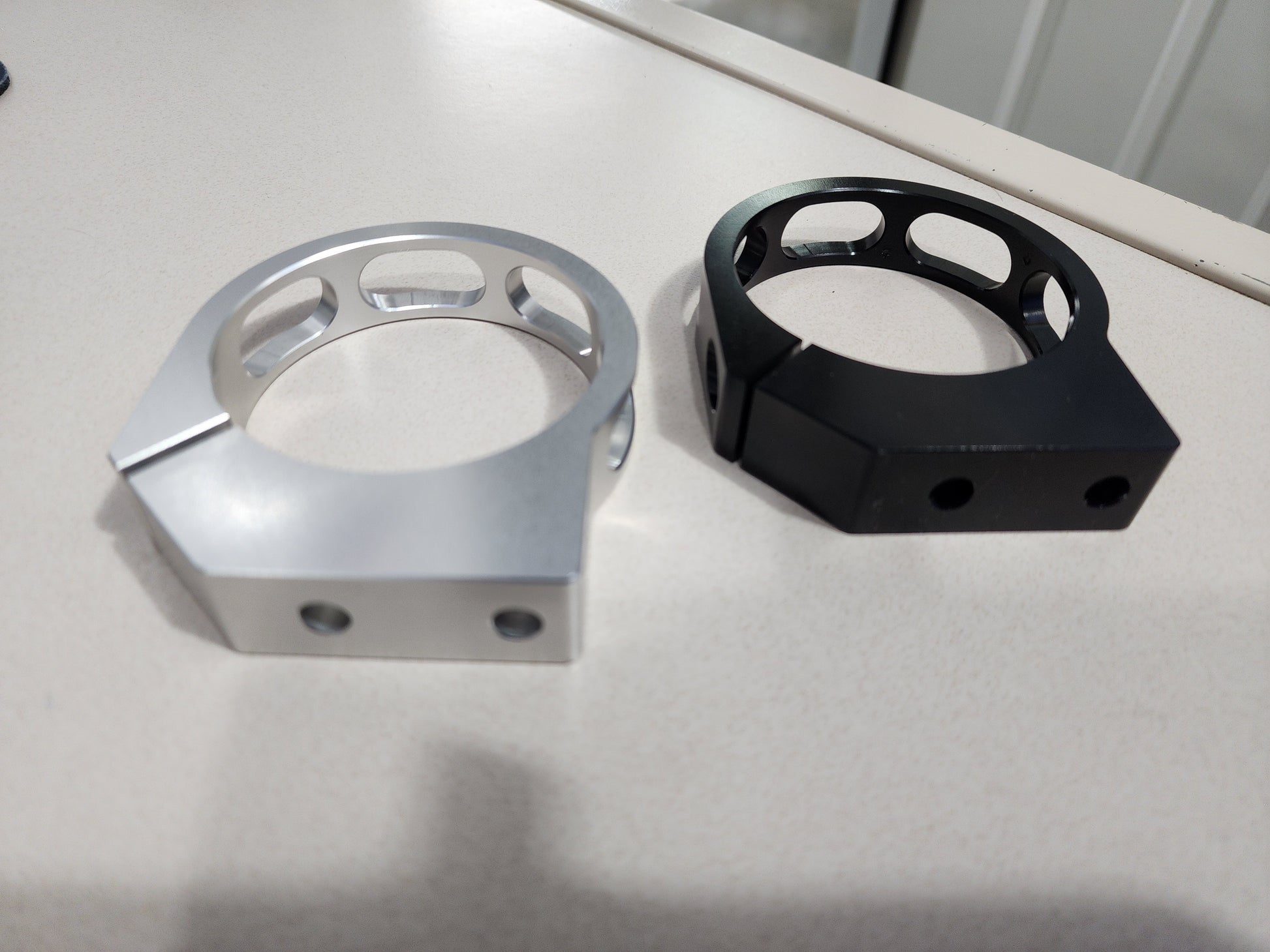 Introducing the new premium billet 2 1/2 inch clamps for mounting your Vapor Trapper™! This product securely mounts your Vapor Trapper with a showcase quality appeal, specifically designed for mounting in visible locations. Fits both 6" and 8" Vapor Trappers. The quality billet aluminum comes in 2 anodizing finishes and is machined here in Arizona. Sold in a matching pair. 2 needed per installation.
